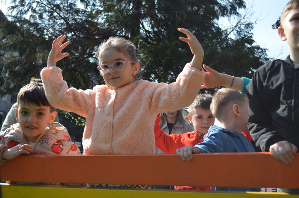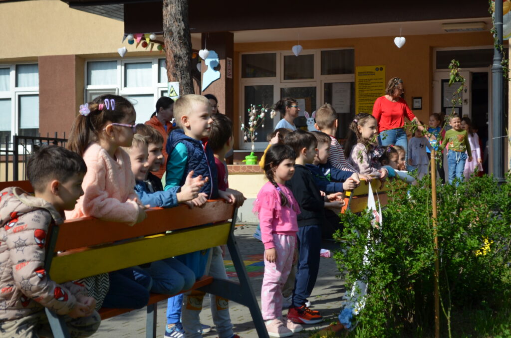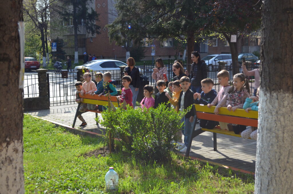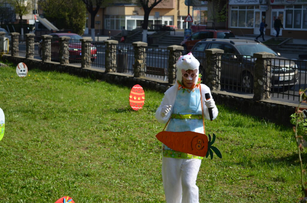 Pentru preșcolari a fost o supriză să îl vadă pe Iepuraș în curtea grădiniței oferindu-le surprize muzicale, jocuri și cadouri.
