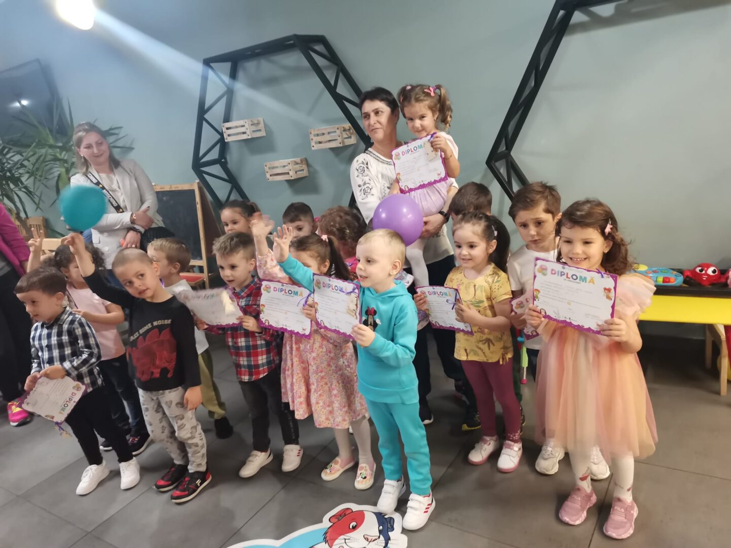 După un an în care preșcolarii au învățat despre: natură, om, cifre, litere, reguli etc., acum, la sfârșit, au avut parte de mici distracții.