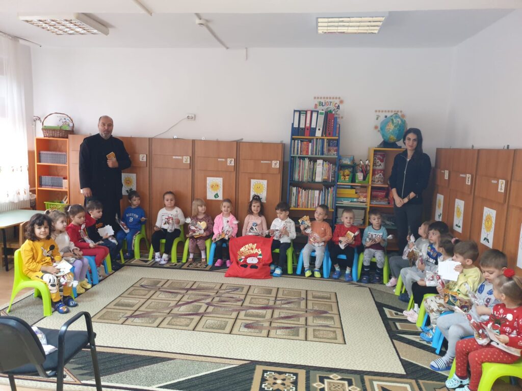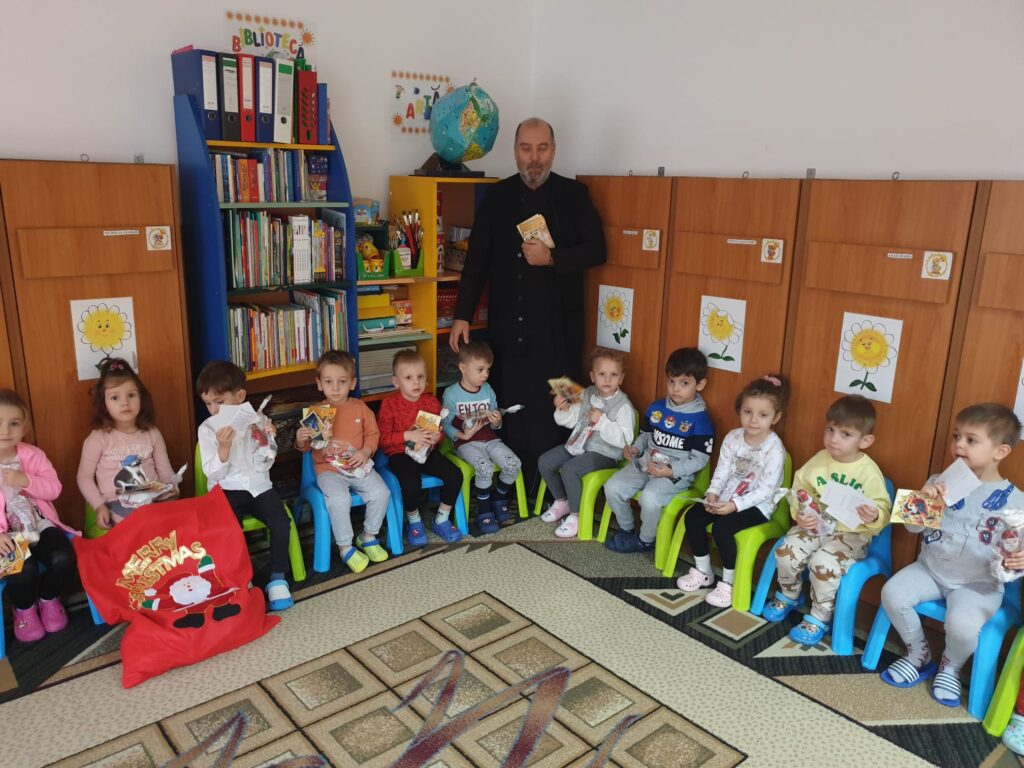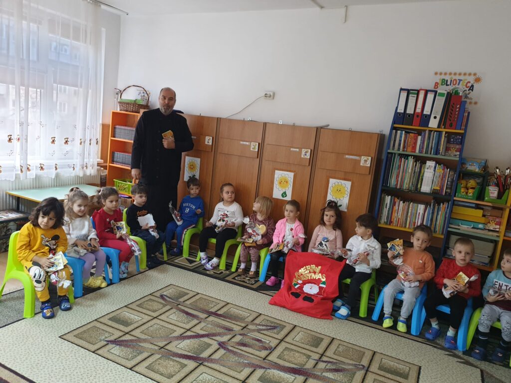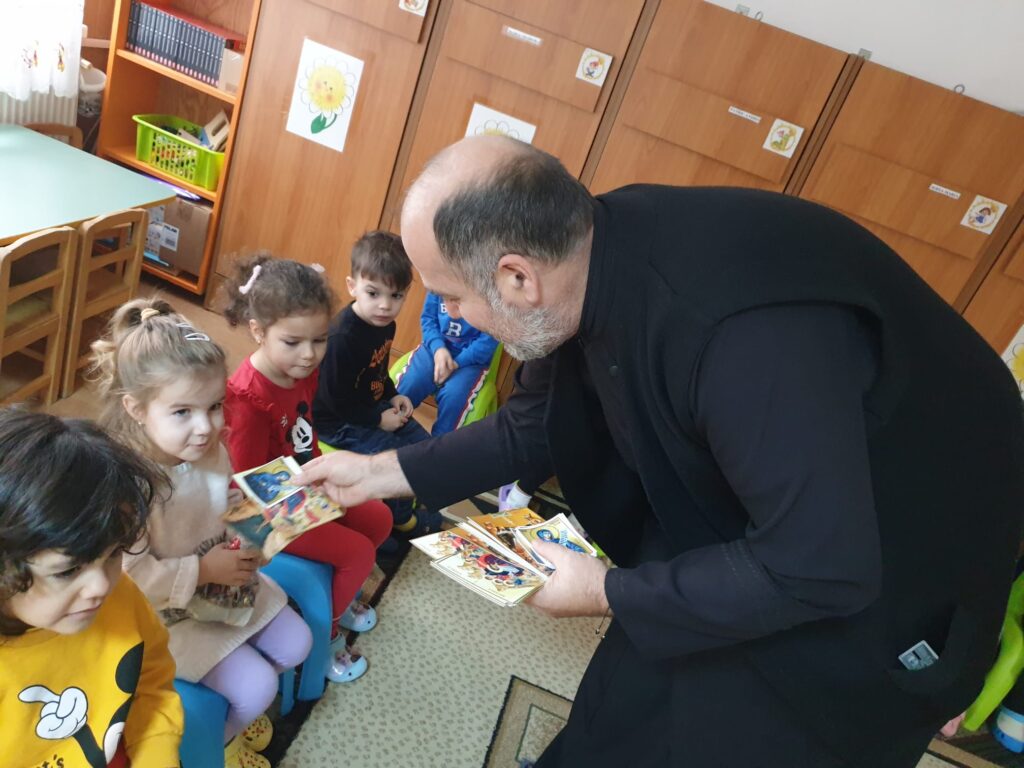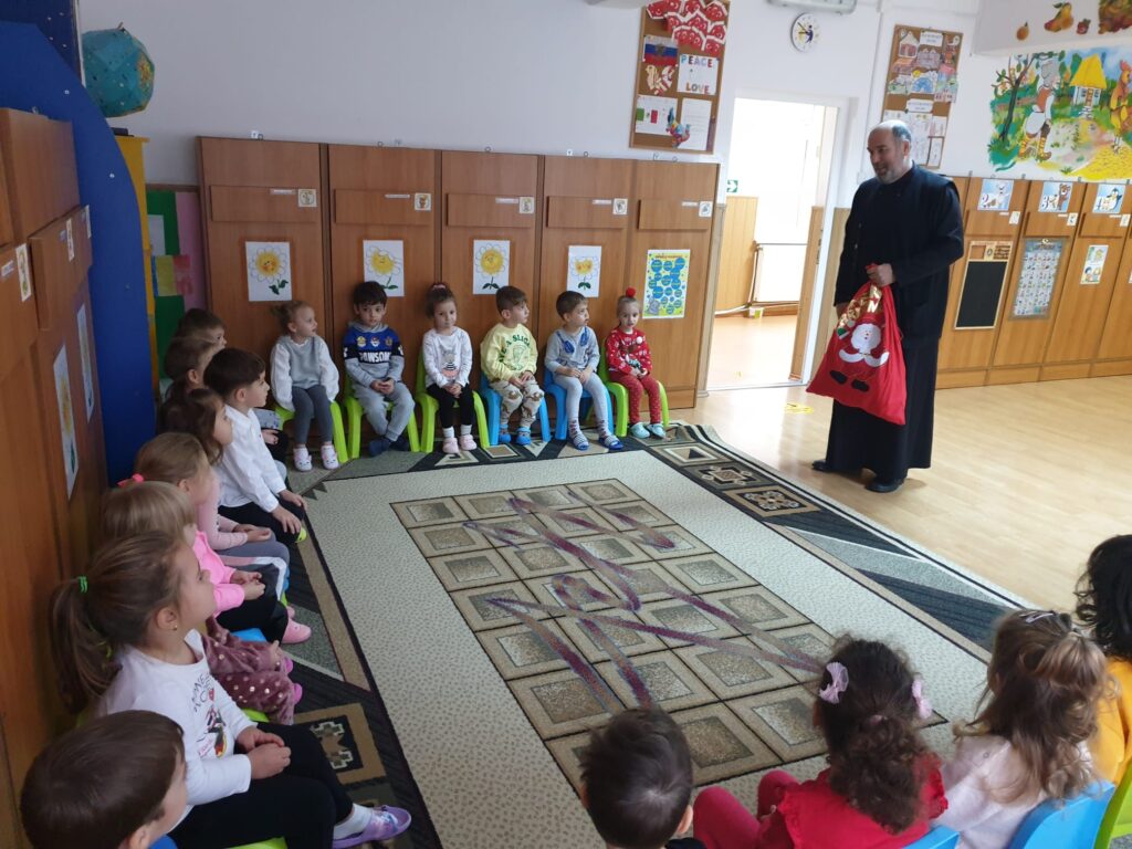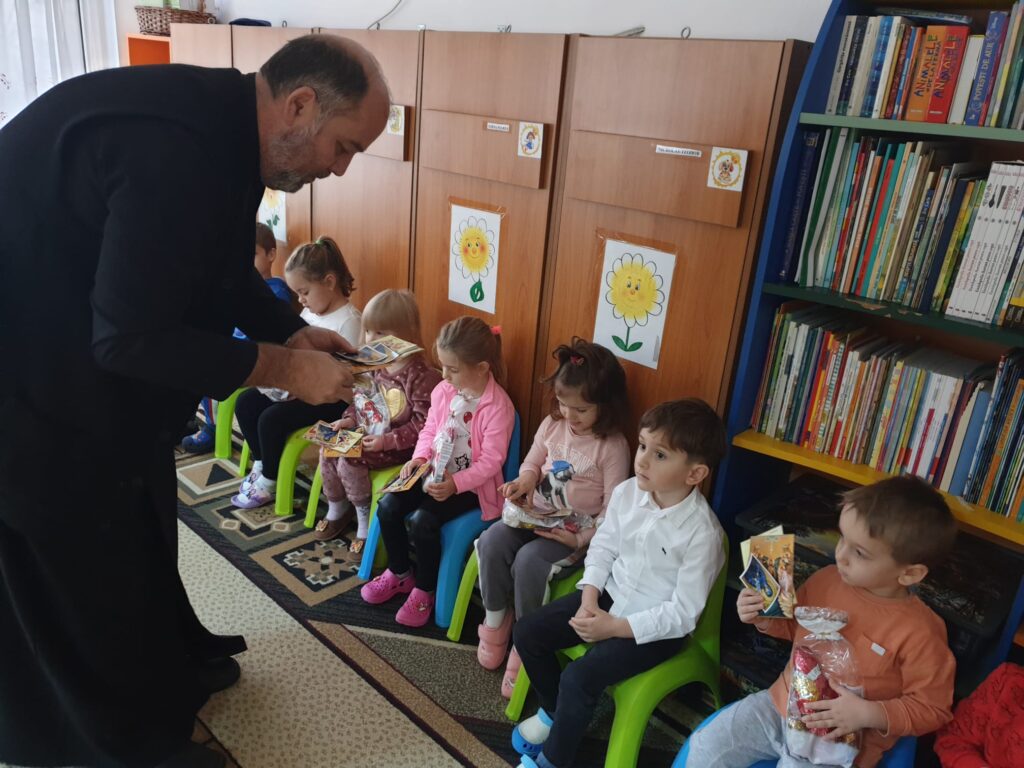 Preotul Neagoe Gabriel a bucurat o mică comunitate din grădinița noastră și a continuat tradiția de „a dărui„ din cadrul proiectului „Dai voință, iei putere”.